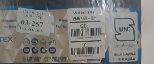 لنت ترمزکفشکی عقب ولوو fm9 اسپارتکس کد فنی 19939۲٬۷۸۱٬۰۰۰ تومان